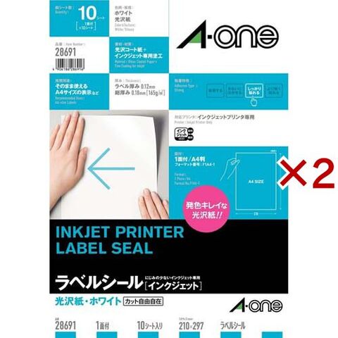 エーワン ラベルシール インクジェット 光沢紙 1面 ノーカット 28691 (10シート×2セット)