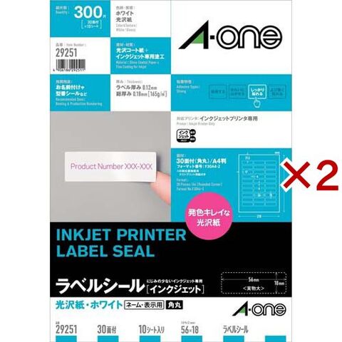 エーワン ラベルシール インクジェット 光沢紙 30面 56×18mm 29251 (10シート×2セット)