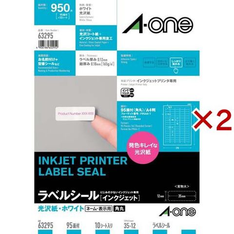 エーワン ラベルシール インクジェット 光沢紙 95面 35×12mm 63295 (10シート×2セット)