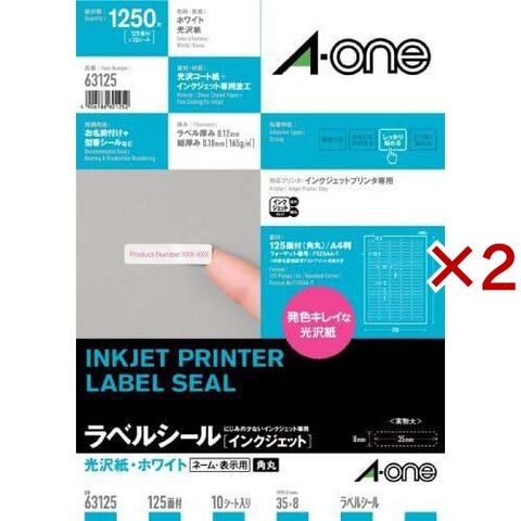 エーワン ラベルシール インクジェット 光沢紙 125面 35×8mm 63125 (10シート×2セット)