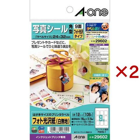 エーワン 写真シール インクジェット フォト 光沢紙 9面 32×24mm 29602 (12シート×2セット)
