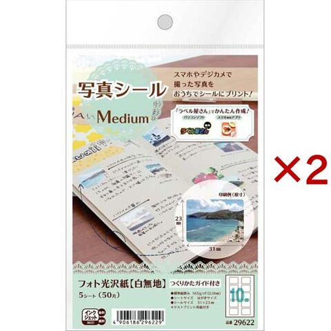 エーワン 写真シール インクジェット 10面 23×31mm 29622 (5シート×2セット)