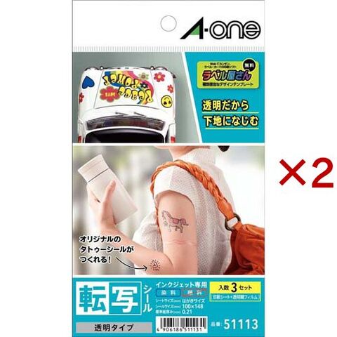 エーワン 転写シール タトゥシール インクジェット 染料 透明 はがき 51113 (3シート×2セット)