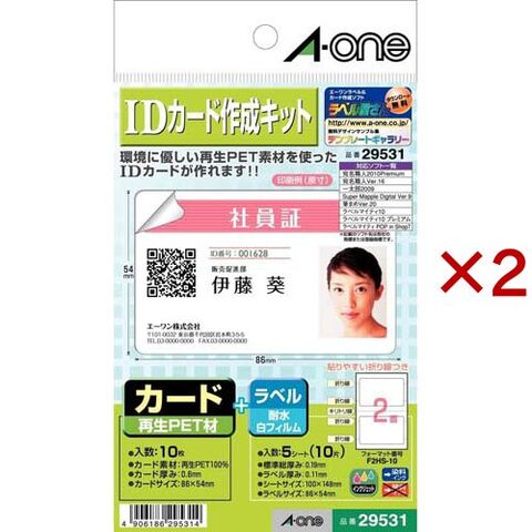 エーワン IDカード 作成キット インクジェット 2面 86×54mm29531 (5&10シート×2セット)