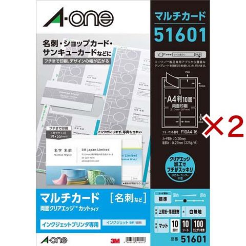エーワン 名刺 カード インクジェット フチスッキリ フチまで印刷 白 51601 (10シート×2セット)