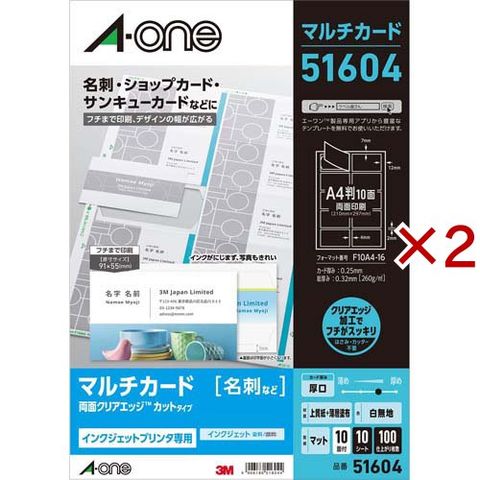 エーワン 名刺 インクジェット フチスッキリ フチまで印刷 厚口 白 51604 (10シート×2セット)