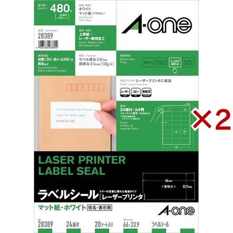 エーワン ラベルシール レーザー 24面 66×33.9mm 28389 (20シート×2セット)