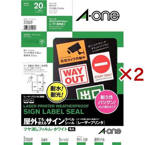 エーワン 屋外使える ラベル レーザー つや消し フィルム 白 4面 139×99.1mm 31069 (5シート×2セット)