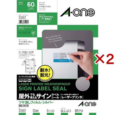 エーワン 屋外使える ラベル レーザー つや消し フィルム シルバー 12面 31057 (5シート×2セット)