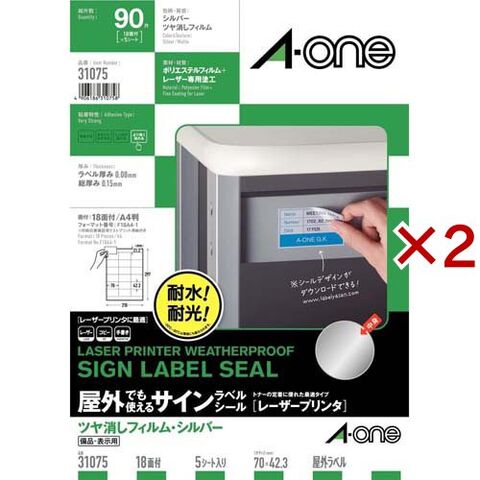 エーワン 屋外使える ラベル レーザー つや消し フィルム シルバー 18面 31075 (5シート×2セット)