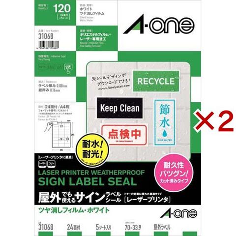 エーワン 屋外使える ラベル レーザー つや消し フィルム 白 24面 70×33.9mm 31068 (5シート×2セット)