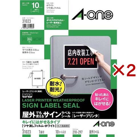 エーワン 屋外使える ラベル レーザー きれいにはがせる つや消し 白 A4 1面 31023 (10シート×2セット)
