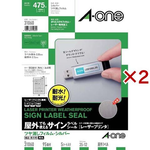 エーワン 屋外使える ラベル レーザー つや消し フィルム シルバー 95面 31060 (5シート×2セット)