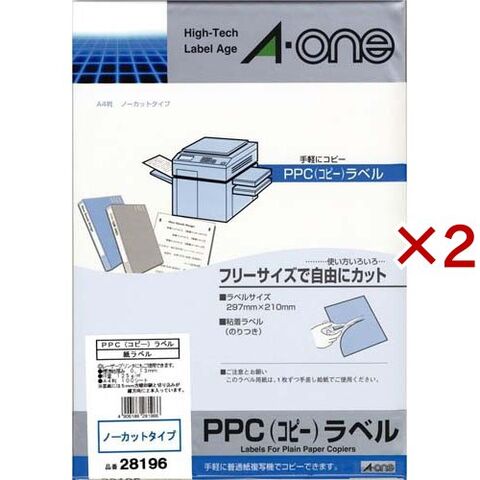 エーワン ラベルシール PPC コピー ラベル 1面 ノーカット 210×297mm 28196 (100シート×2セット)