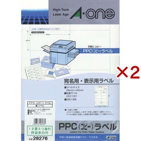 エーワン ラベルシール PPC コピー ラベル 12面 85×42mm 28276 (100シート×2セット)