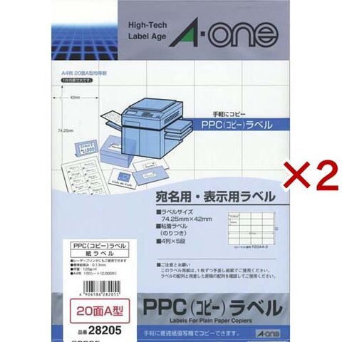 エーワン ラベルシール PPC コピー ラベル 20面 42×74.25mm 28205 (100シート×2セット)