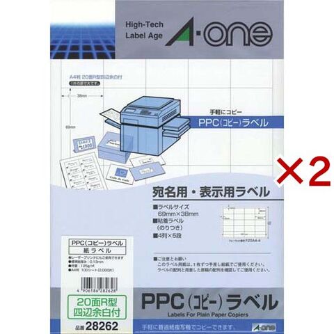エーワン ラベルシール PPC コピー ラベル 20面 69×38mm 28262 (100シート×2セット)
