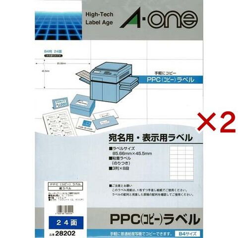 エーワン ラベルシール PPC コピー ラベル 24面 85.66×45.5mm 28202 (100シート×2セット)