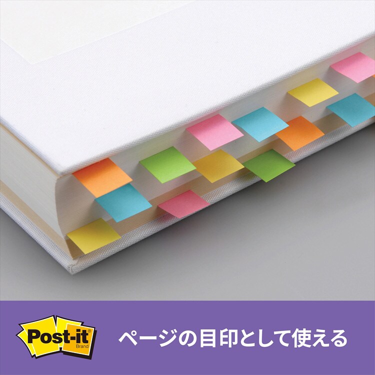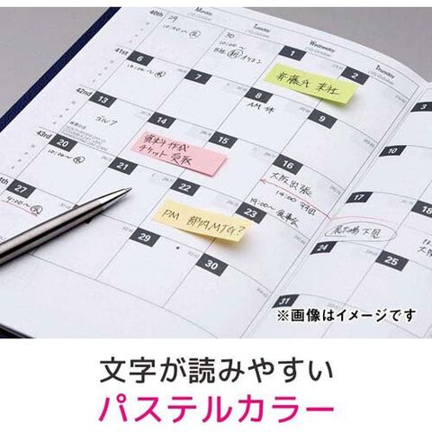 ●強粘着タイプのパステルカラーのポスト・イット(R)見出しです。パソコンのデスクトップやキャビネット、樹脂製品などつきにくかった場所にしっかり貼れます。