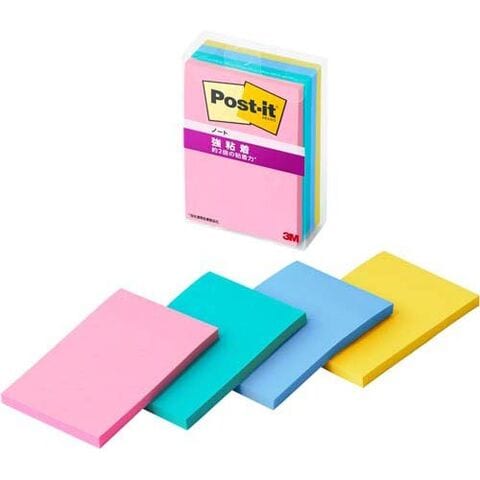 ●強粘着タイプのポスト・イット(R)ノートです。パソコンのデスクトップやキャビネット、樹脂製品などつきにくかった場所にしっかり貼れます。