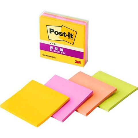 【3M ポストイット 付箋 強粘着 ノート 75mm×75mm 4色 654SS-MC-6の商品詳細】