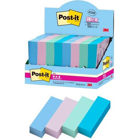 3M ポストイット 付箋 強粘着 見出し 50mm×15mm 4色 7001SS-MC-2N (32パッド入×2セット(1パッド90枚))