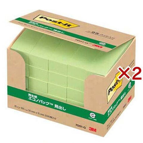 ポスト・イット 再生紙 エコノパック 見出し グリーン 7001-G (25パッド×2セット(1パッド100枚))