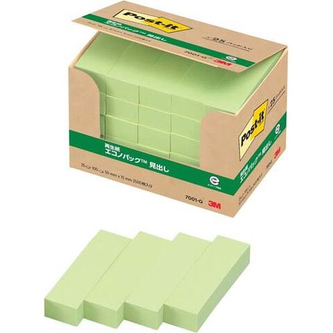 ポスト・イット 再生紙 エコノパック 見出し グリーン 7001-G (25パッド×2セット(1パッド100枚))のレビュー