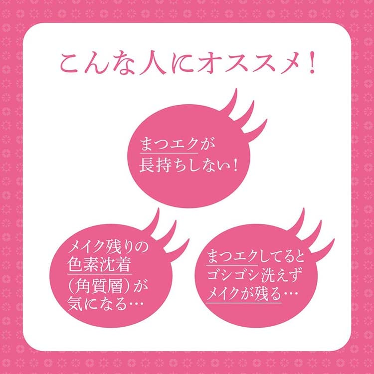 ●メイクの洗い残しによる毛穴づまりや黒ずみ(古い角質)を洗い流し、まつ毛環境を整えます。