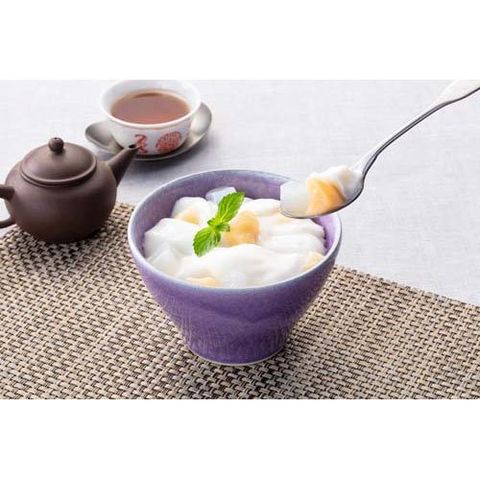 ●みずみずしい白桃果肉と、コリコリっとしたナタデココとともに、まろやかな杏仁豆腐のリッチな味わいが楽しめます。