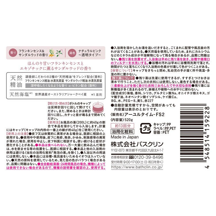 ●2種の天然精油(香料)と世界遺産生まれの天然海塩*1を使用したアロマバスソルト