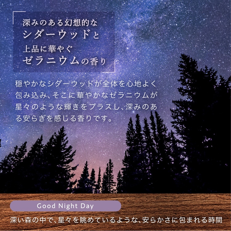 ●深みのある幻想的なシダーウッドと上品に華やぐゼラニウムの香り