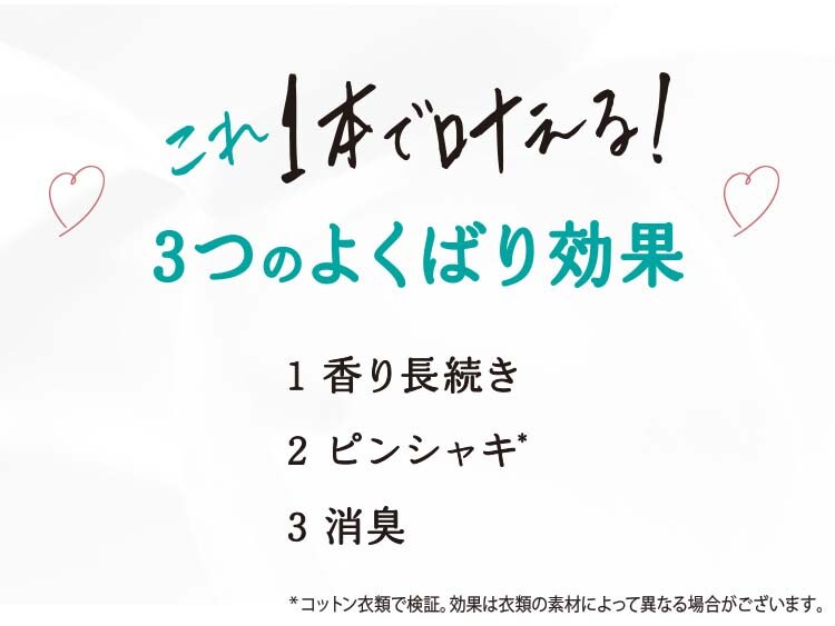※コットン衣類で検証。効果は衣類の素材によって異なる場合がございます。※1 静電気を防ぐ効果による