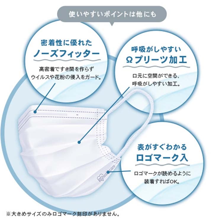 (アイリス プリーツ型 17.5cm 9cm 大きめサイズ 風邪 花粉 不織布 プリーツ型 3層構造 Vカット形状 ますく MASK 175mm 90mm 備蓄 咳 鼻水 不織布マスク 飛沫 ホコリ 埃 ほこり)