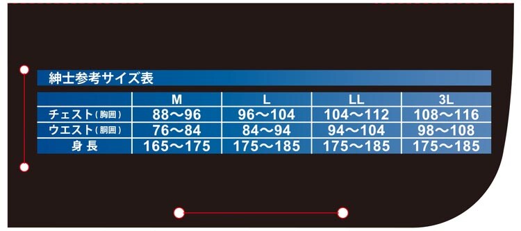 | カラー:ブラック。サイズ:L。身長:175~185cm。胸囲:96~104cm。胴囲:84~94cm。ワンポイント反射プリント付。(材質)本体:ナイロン85%ポリウレタン15%。メッシュ部:ポリエステル96%ポリウレタン4%。 |