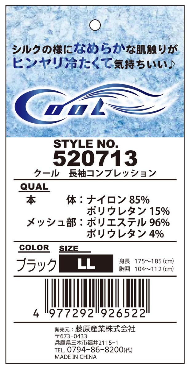 【藤原産業 SK11 クール 長袖コンプレッション シャツ ブラック 520713-BLK-LLの商品詳細】