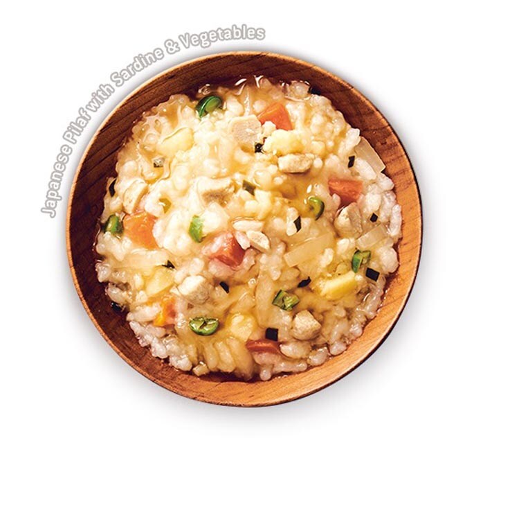 ●いわし・にんじん・大根・いんげん・玉ねぎ・さつまいも・わかめ・米の8種の食材を手軽に摂ることができます。
