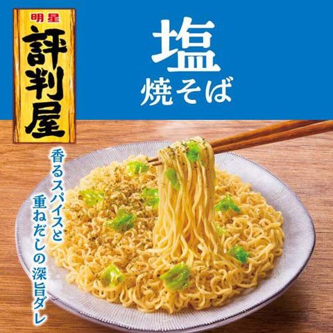 ●しなやかで歯切れのよい麺と、牛と豚の重ねだしをベースに香味野菜を掛け合わせた深旨ダレ。五島灘の塩配合で減塩30%※でもしっかり満足感のある、お手頃価格の塩焼そば。