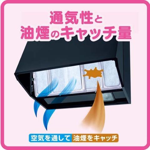 ●1枚タイプだからレンジフードにぴったりフィットし、油汚れを防ぎます。