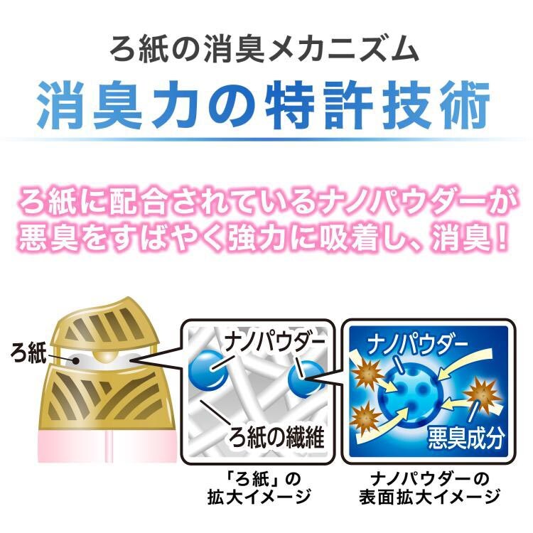 ●ナノパウダー※が悪臭をすばやく強力に吸着し、消臭。