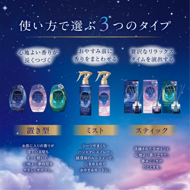 ●おやすみ環境を整える上質な香りが空間に広がります。