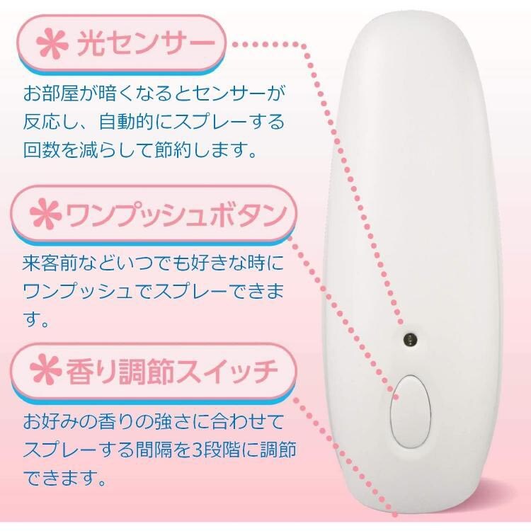 ●消臭芳香ミストが一定のタイミングでシュパッとひろがるので、使いはじめから終わりまで一定の消臭効果が持続し、いつでも新鮮な香りで心地よい空間が実感できる「電池式自動消臭芳香スプレー」です。
