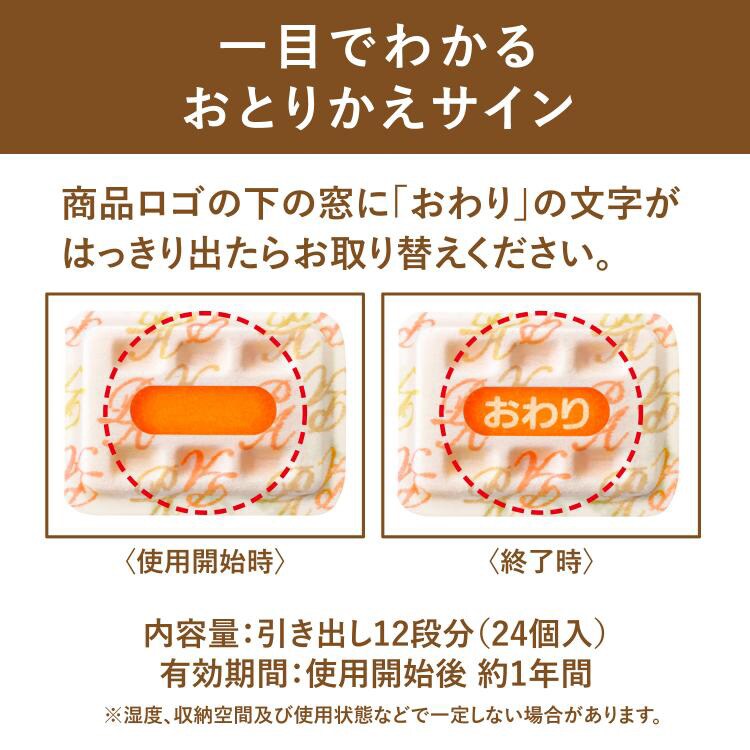 ・内容量 24個(2個入×12包) 中身の包装は、2個(引き出し1段分)ずつ分包。