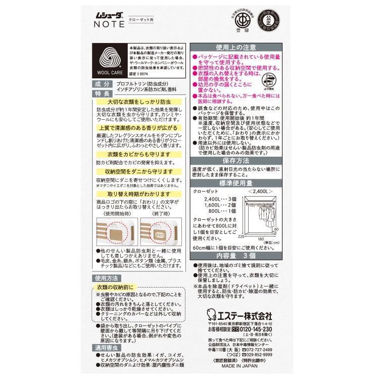 【クローゼット用 ムシューダ ノート 衣類用 防虫剤 ホワイトリリー 1年間有効の商品詳細】
