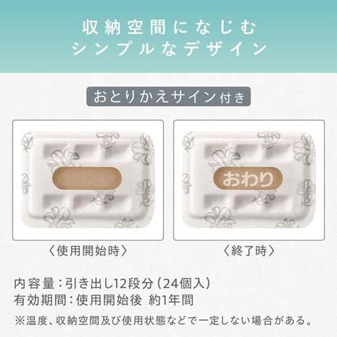 ・内容量 24個(2個入×12包) 中身の包装は、2個(引き出し1段分)ずつ分包。