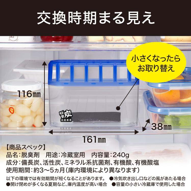 ●冷蔵庫の気になるニオイを備長炭と活性炭の力でしっかり脱臭!