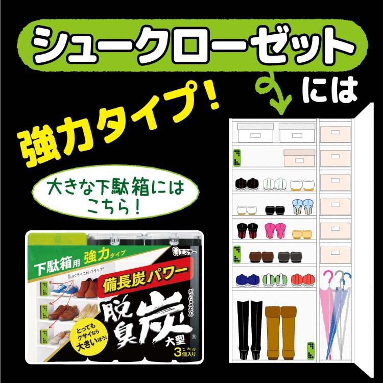 脱臭炭 下駄箱用 脱臭剤 大型 強力タイプ 玄関 こわけ3個入 (3個入×5セット)