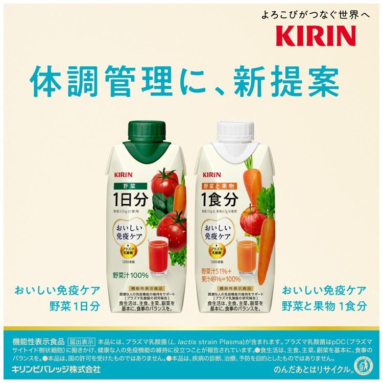 キリン おいしい免疫ケア 野菜 一日分 プラズマ乳酸菌 機能性表示食品 (12本入×2セット(1本330ml))