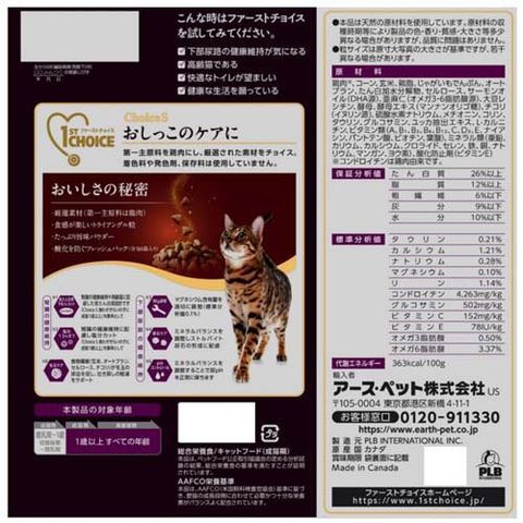 【ファーストチョイス ChoiceS オシッコのケアに 成猫1歳以上の商品詳細】