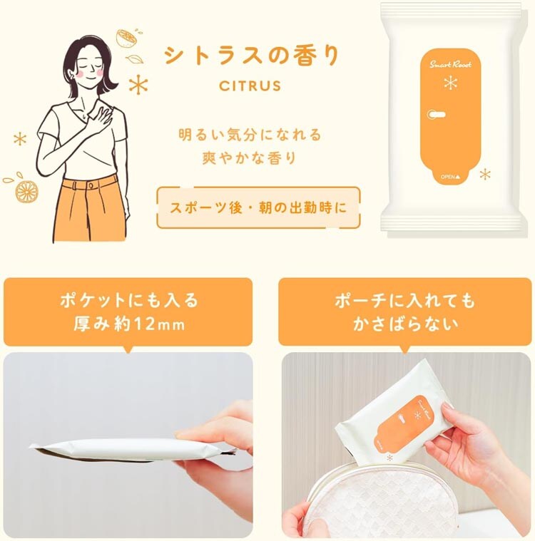 【トイレに流せるボディシート 女性用 シトラス 冷感タイプ 保湿成分ヒアルロン酸配合の商品詳細】